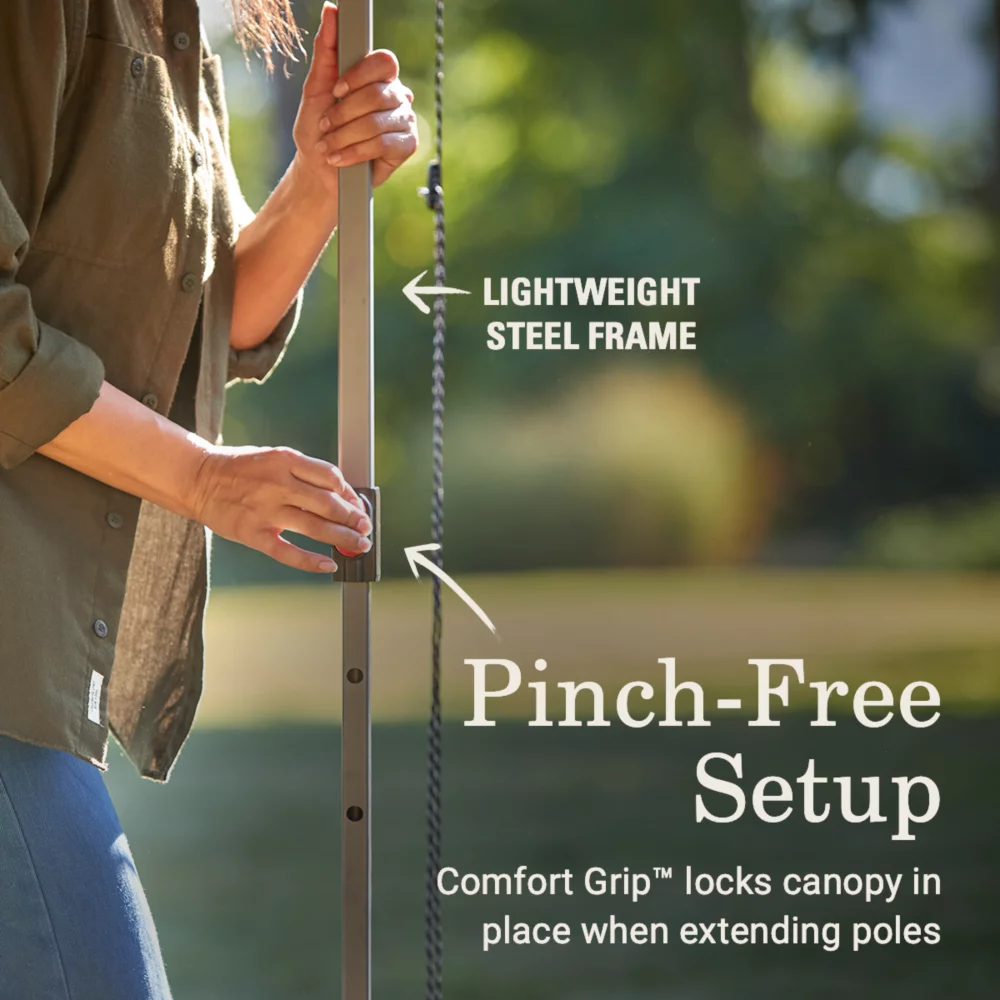 - PINCH-FREE SETUP & TAKEDOWN: Comfort Grip™ features easy-to-use buttons for locking the poles in place when setting up or taking down